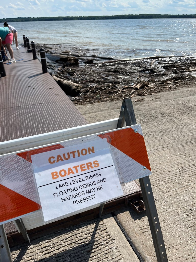With a ton of rain the last several days and weeks, water levels are now dangerously high. In some places, boat ramps are closed and where they are open, boaters are advised to use caution as there is so much debris in the water which can be a) unsafe and b) a menace to hulls and propellers, both of which are quite costly to repair or replace.
