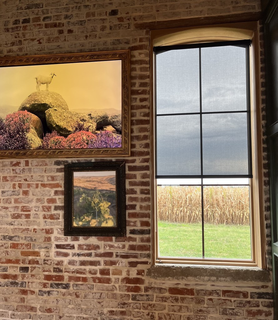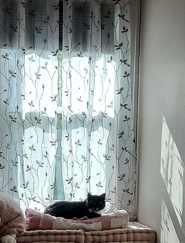 of her simple, cotton draperies