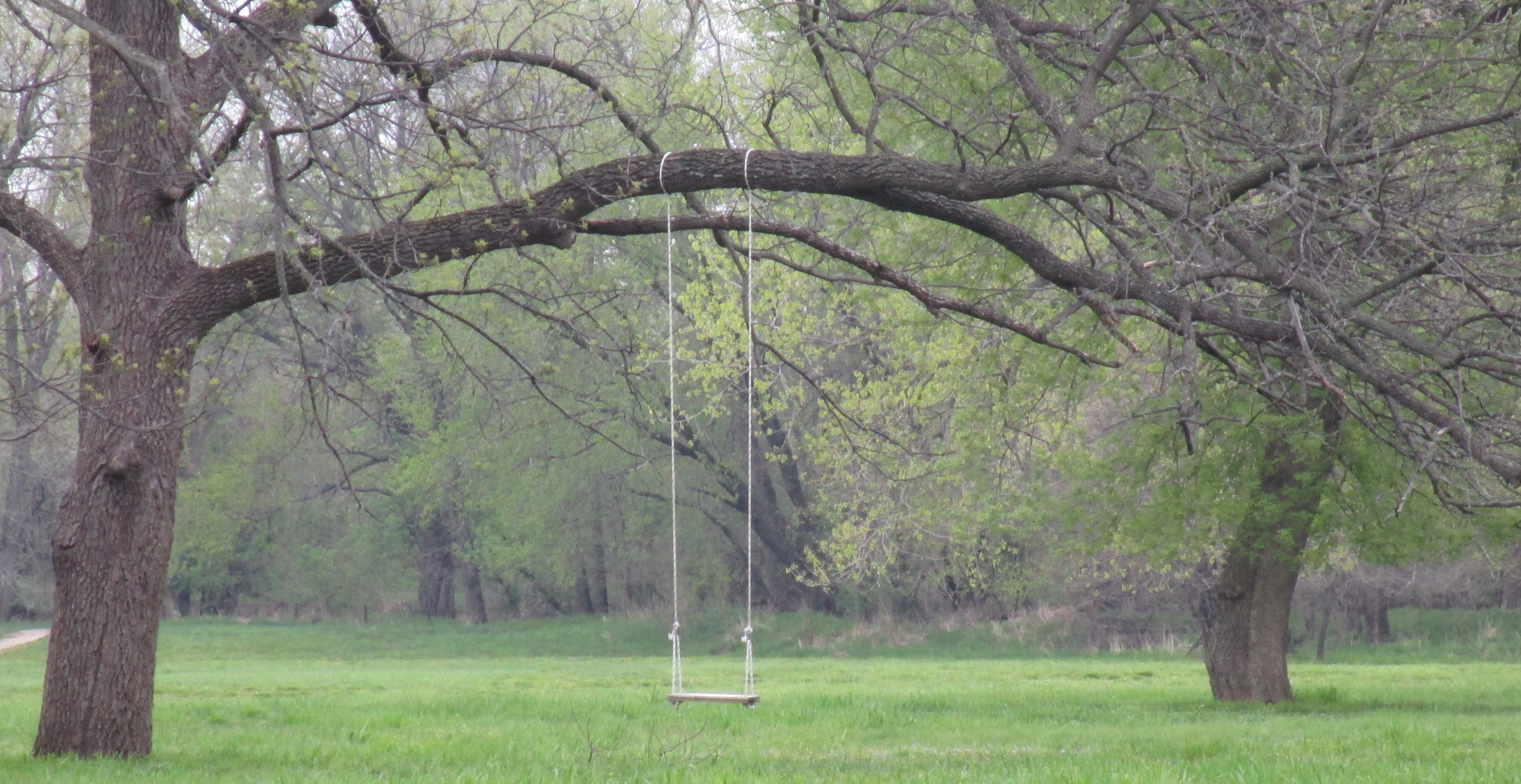 In the midst of a slight clearing, this simple swing suspended from an old tree, seemingly erected for no other reason than the joy of providing that childhood rush of rising and falling, gathering speed in the open air, legs reaching higher and higher – just for the sheer fun of it all.